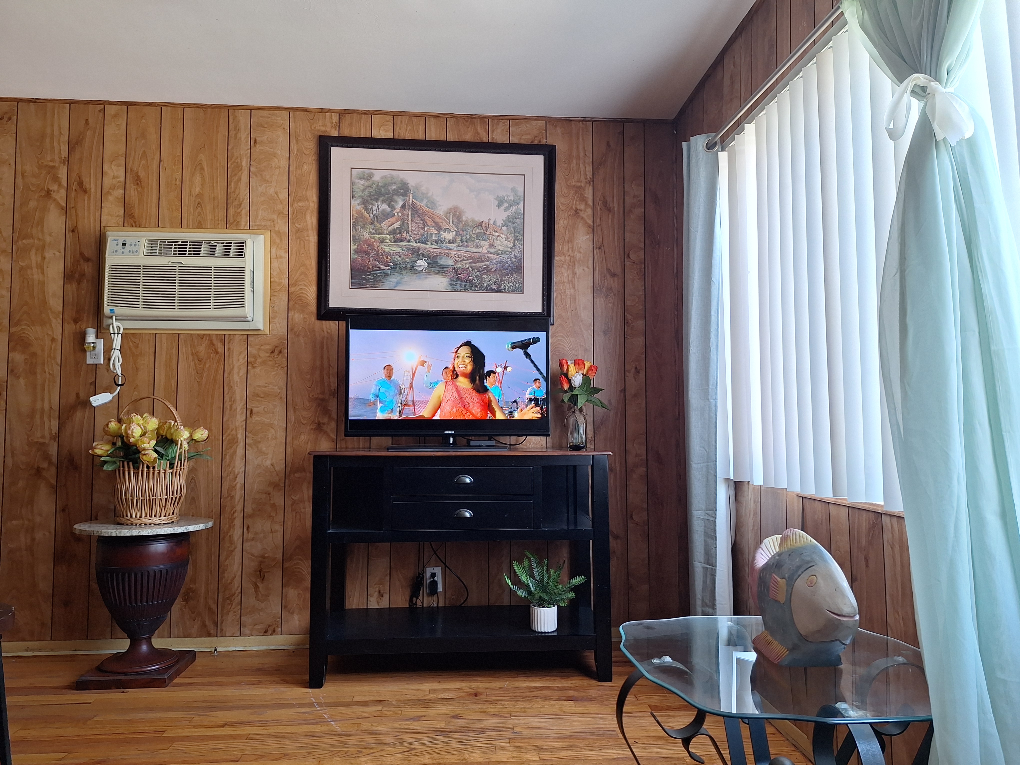 Una habitación, banio amplio, cocina pequena, dos closets, aire acondicionado, Parqueo privado.